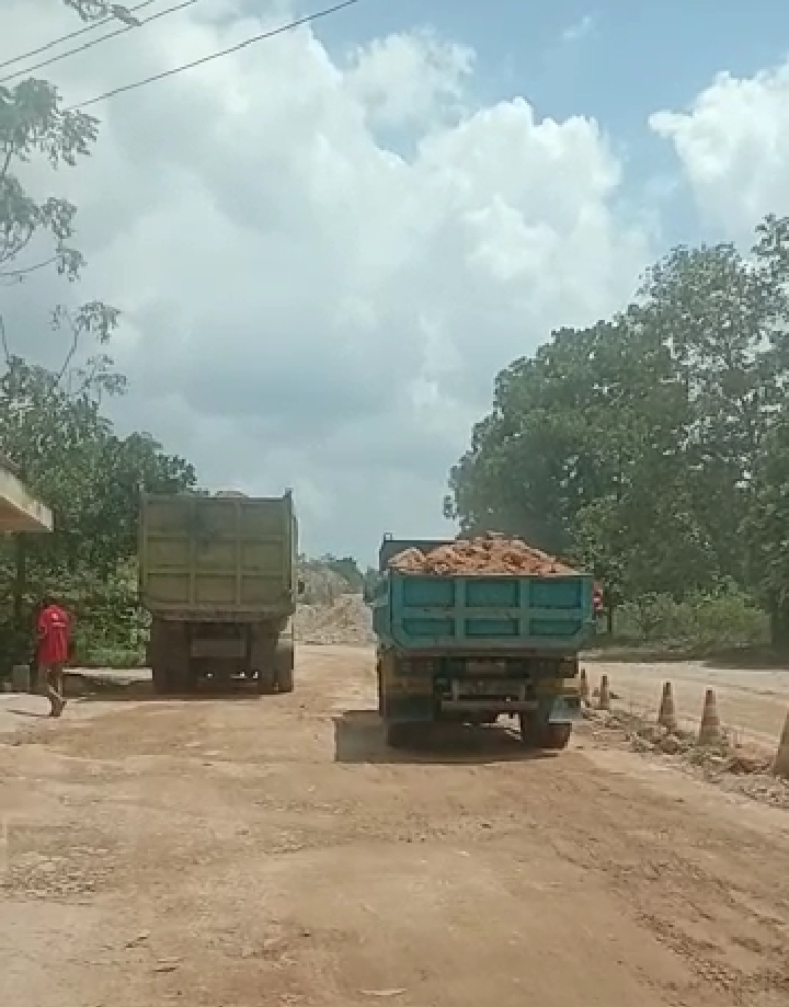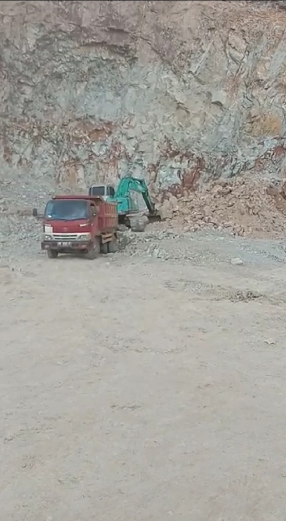 Tampak jelas lalu lalang truk maupun puso membawa hasil tambang keluar masuk dari lokasi penambangan, ekcavator terus bekerja menggali hasil tambang, berupa batu,sabes dan lainnya. Kegiatan penambangan ini jelas melanggar peraturan.